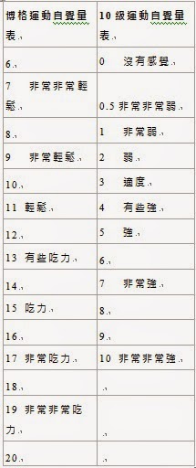 訓練的強度簡單的分類(大致上是這樣,但可能不同的書上或是協會建議的數字會略有不同):